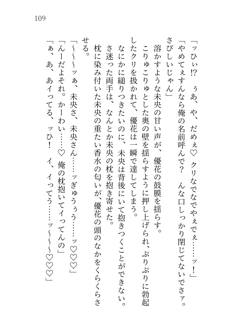 「未央と将来結婚する」「あなたはただの性欲処理」と言う彼女に、家を出るように促される優花。