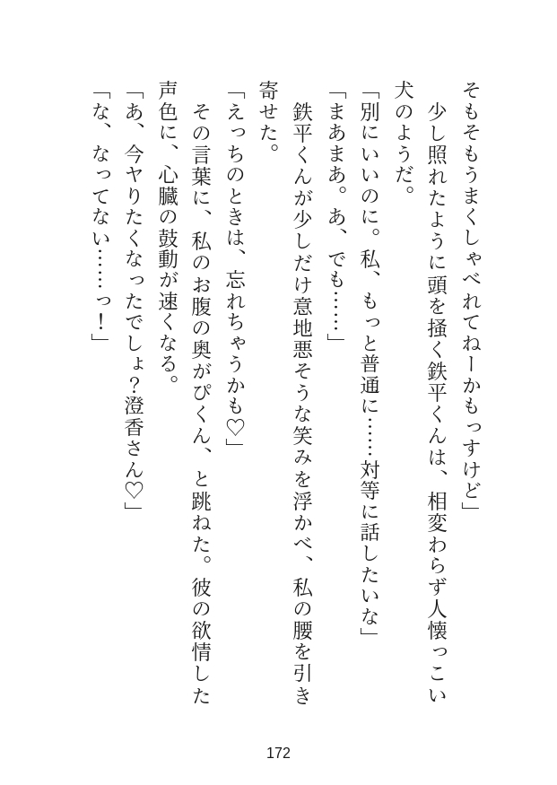 普段は「澄香さん!」と全力で尻尾を振って甘えてくる、人懐っこい大型犬。料理を焦がして本気で落ち込んだりする、不器用な可愛さも満載の年下彼氏。