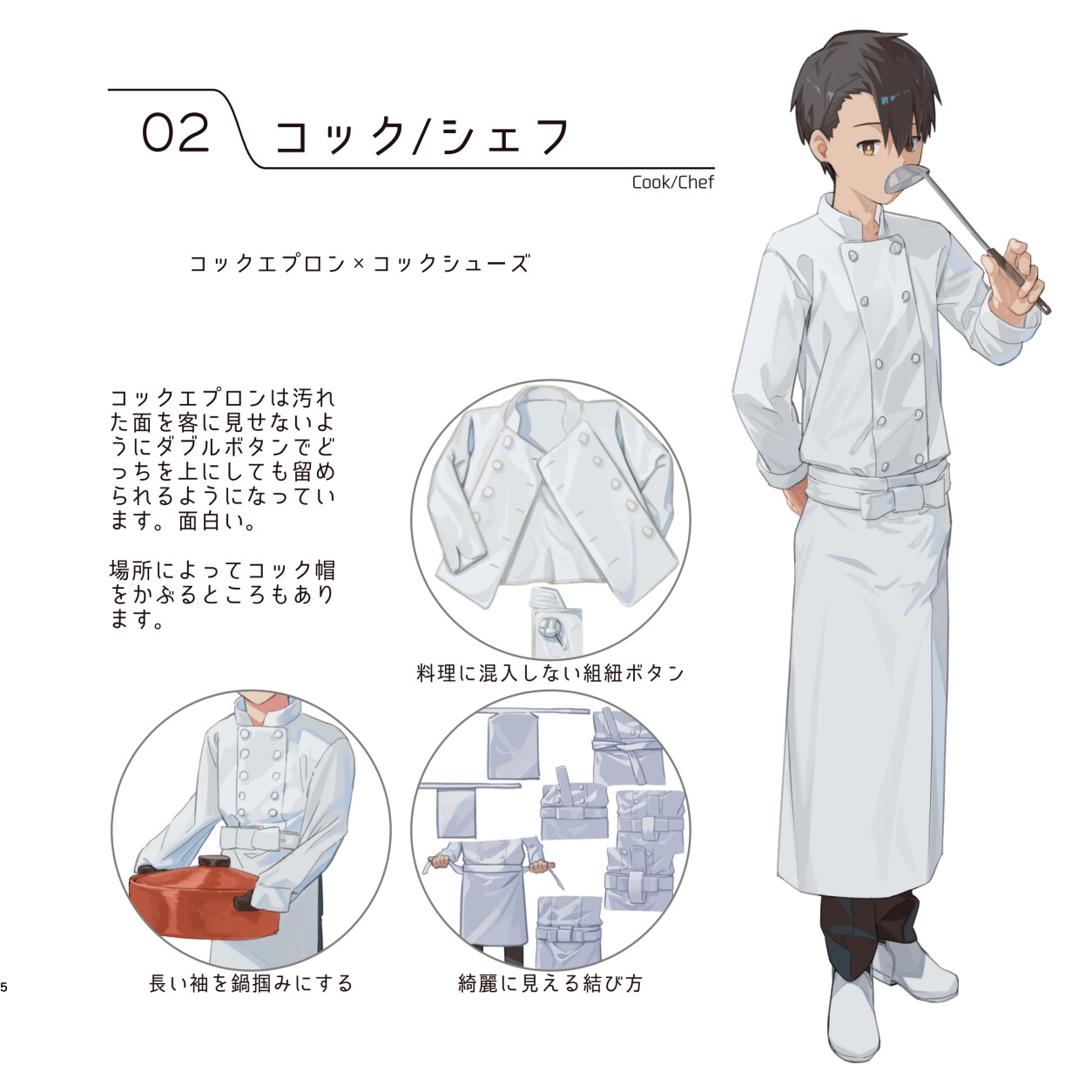 看護師、高所作業員、コンビニ店員…等いろいろな職業の人の服装を調べて描いているイラスト集です。